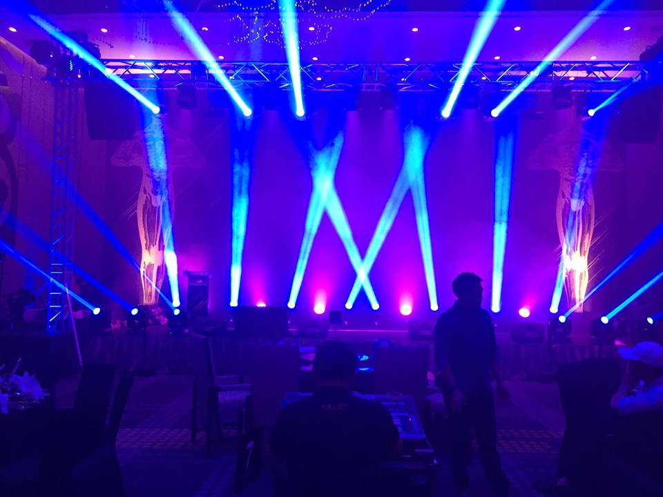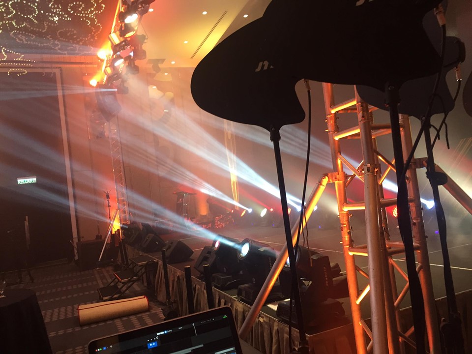 Our event decoration Penang team set up the stage backdrop, lighting and sound system for them.